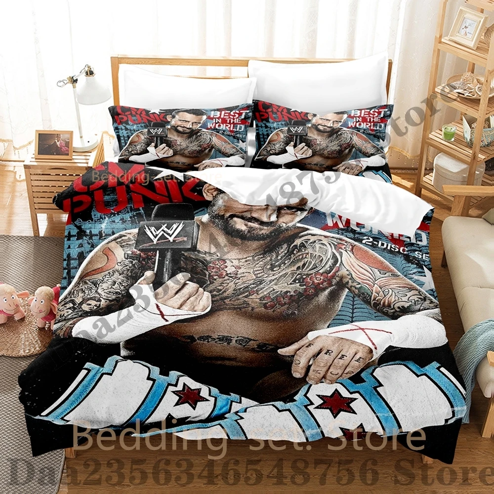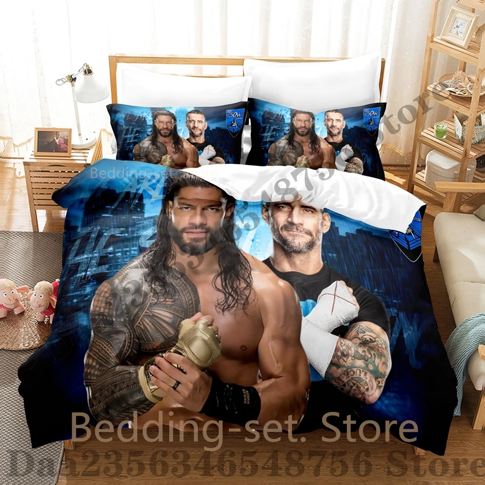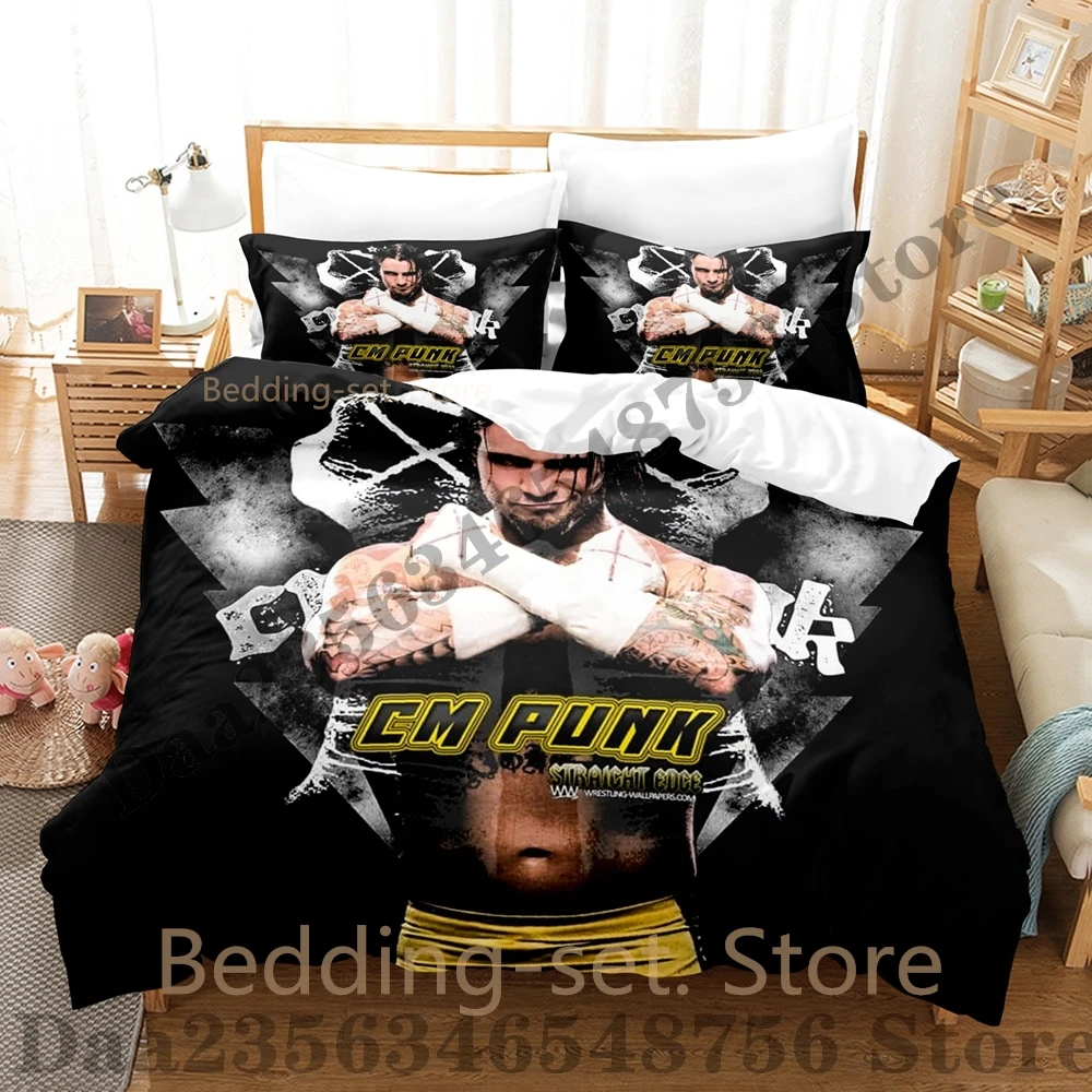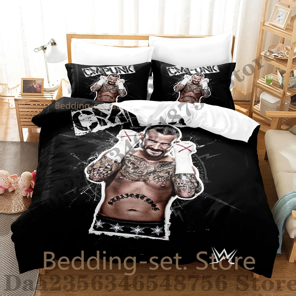 2K25 Jey USO CM Punk Bedding Set Single Twin Full Queen King Size Bed Set Adult Kid Bedroom Duvetcover Sets WWE Bed Sheet Set
