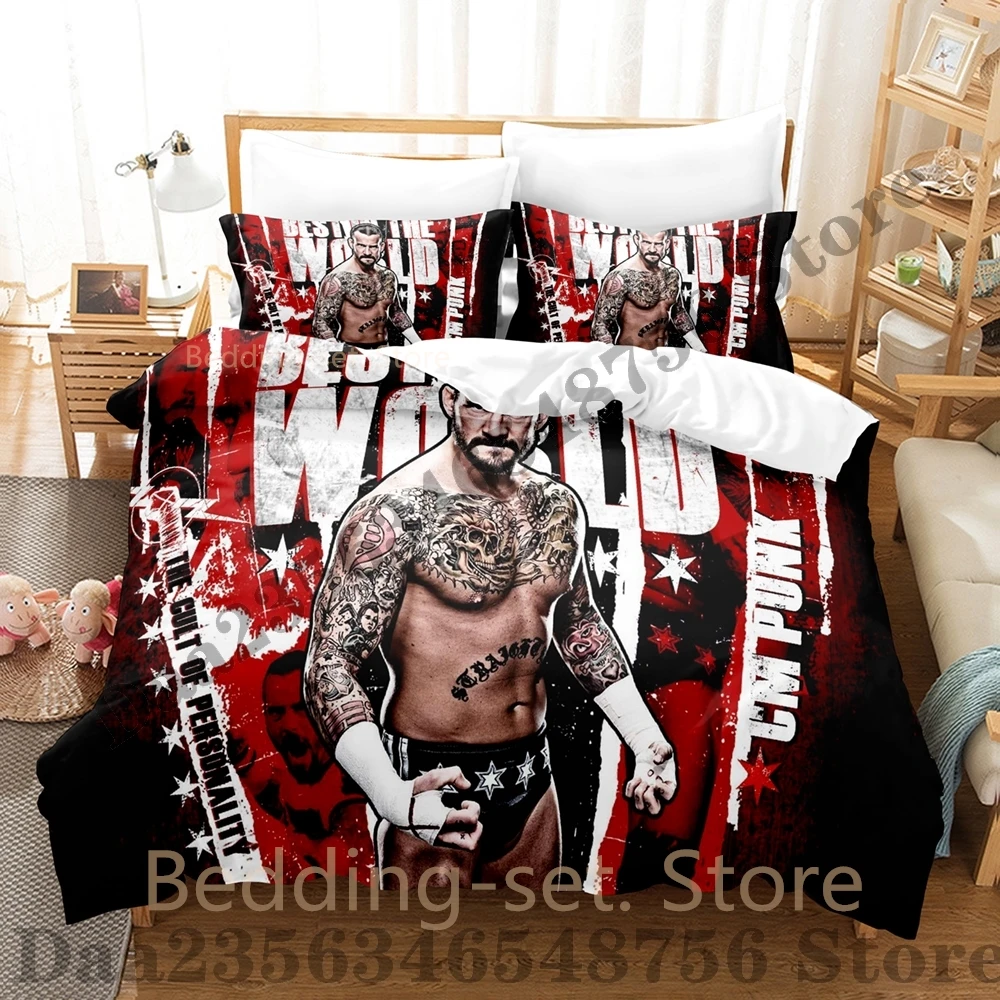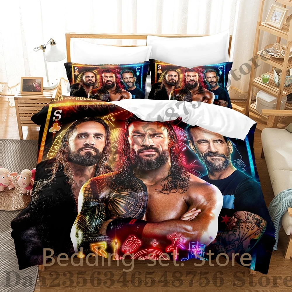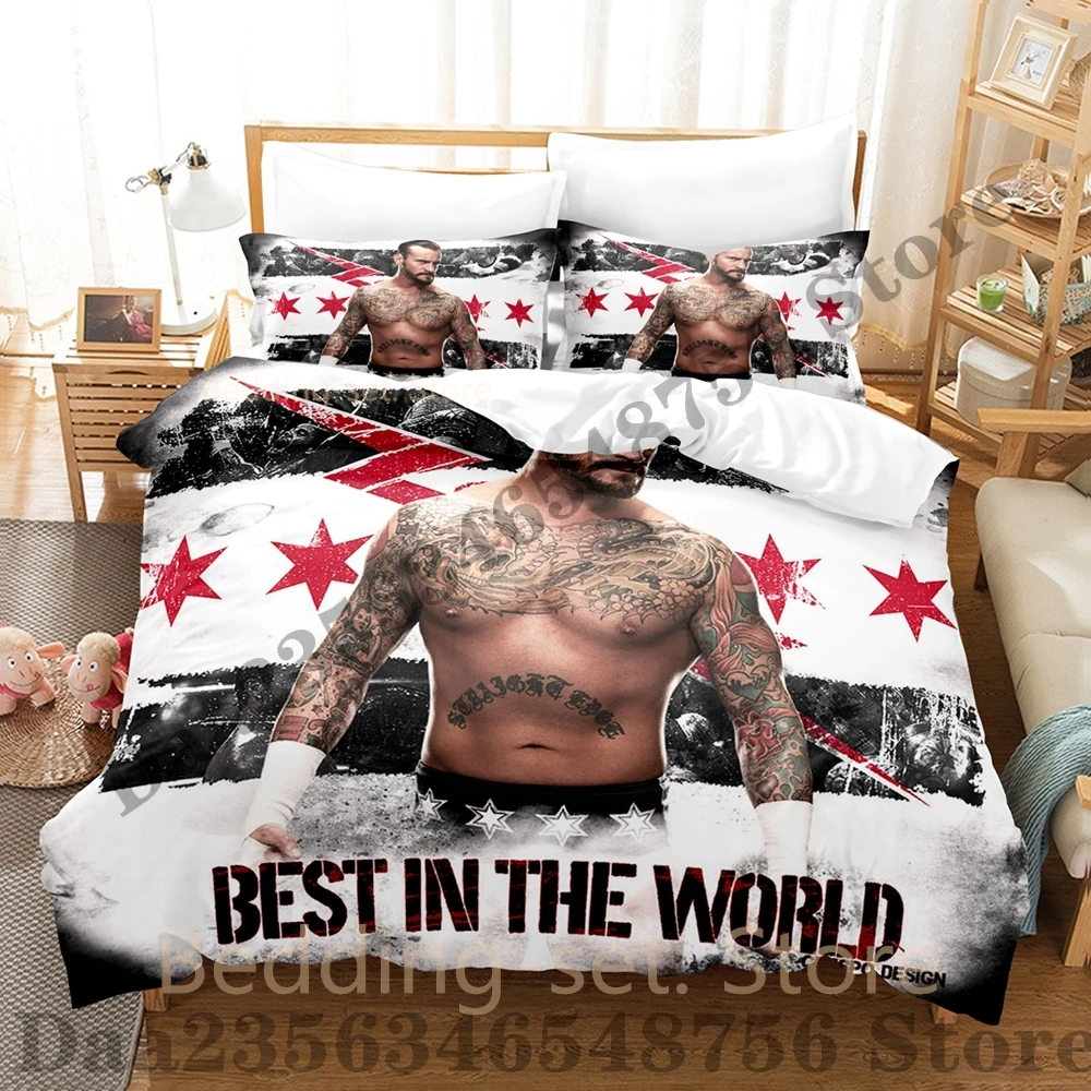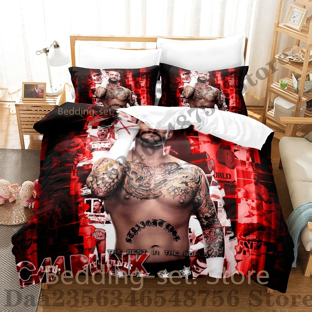 2K25 Jey USO CM Punk Bedding Set Single Twin Full Queen King Size Bed Set Adult Kid Bedroom Duvetcover Sets WWE Bed Sheet Set