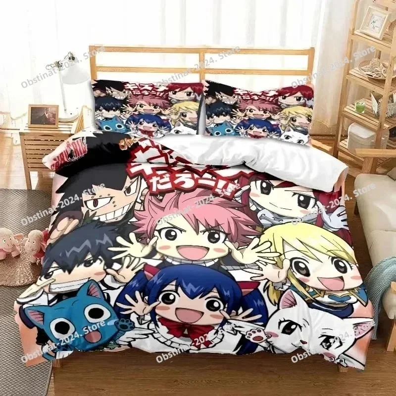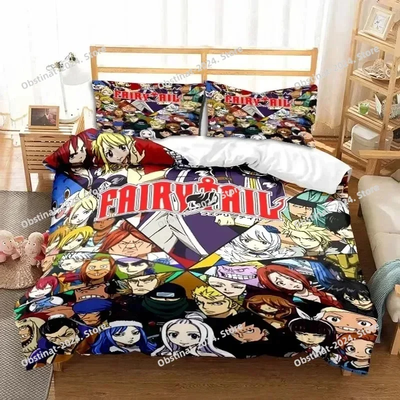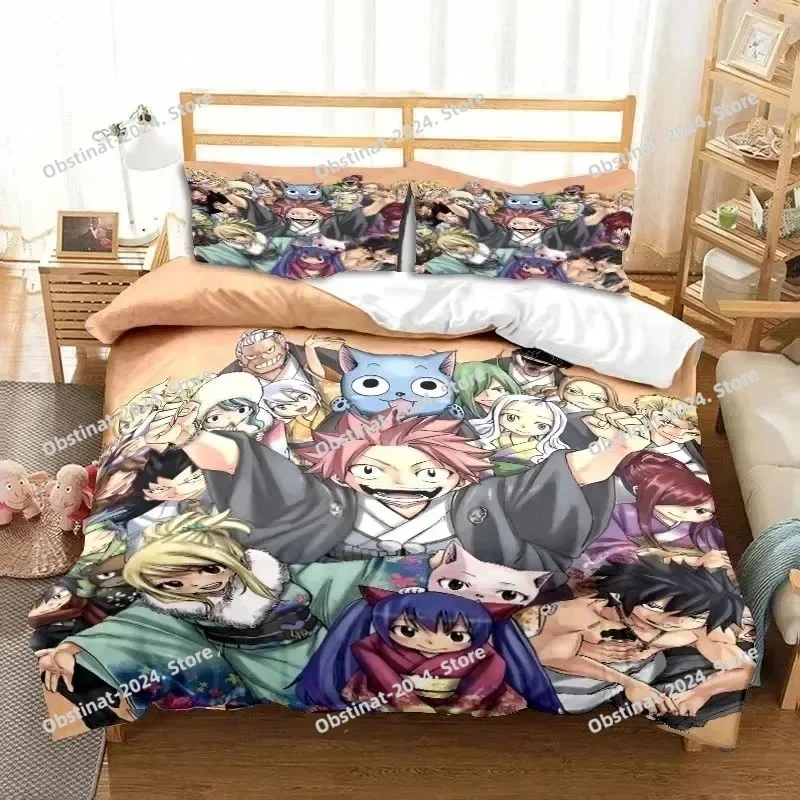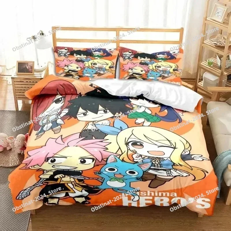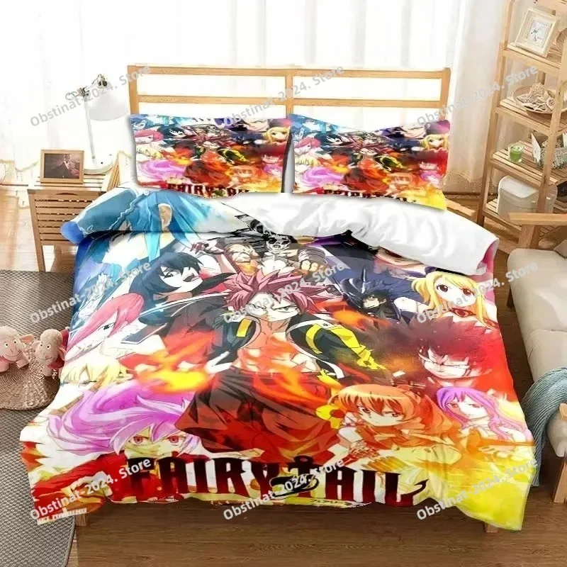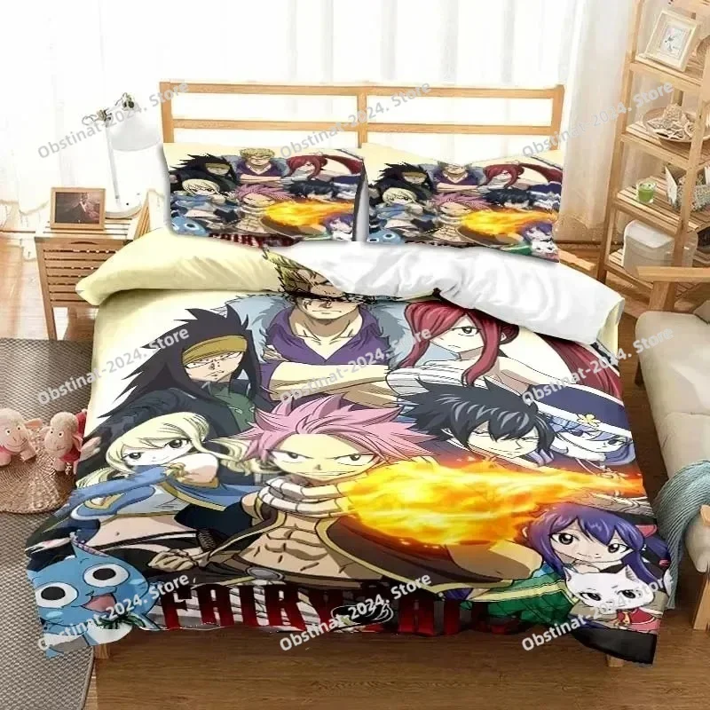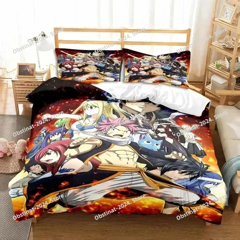 3D Anime Fairy Tail Bedding Set Printed Bed Set With Pillowcase Bed Duvet Cover Soft Single Double Queen Super King Size Bedroom