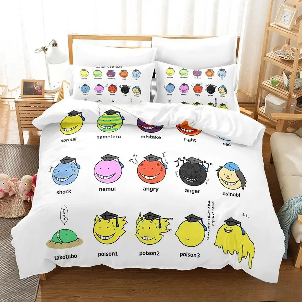 3D Cartoon Assassination Classroom Koro-sensei Bedding Set Boys Girls Twin Queen King Size Duvet Cover Pillowcase Bed Boys Adult