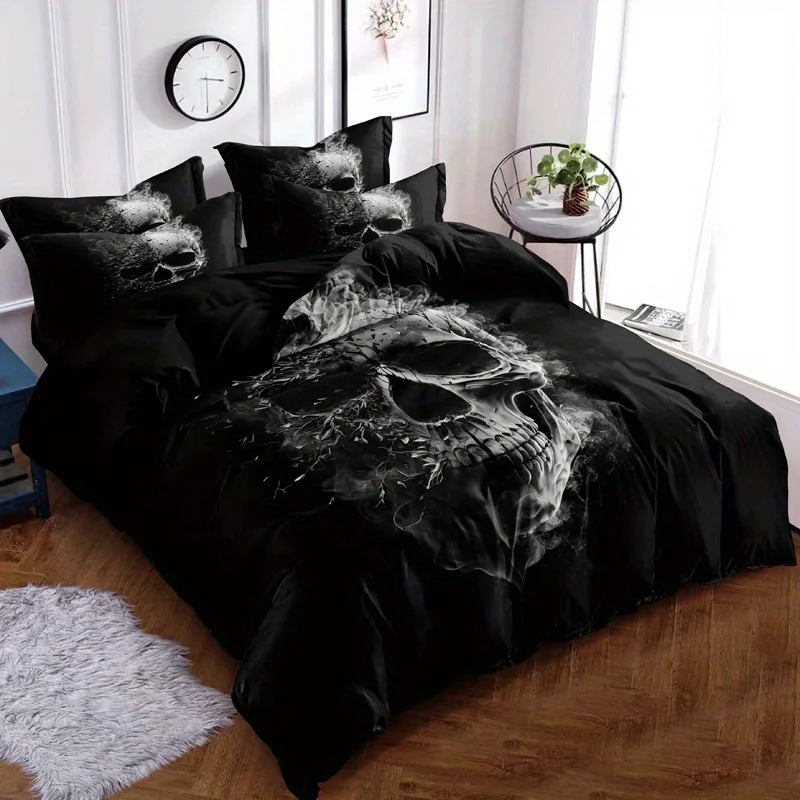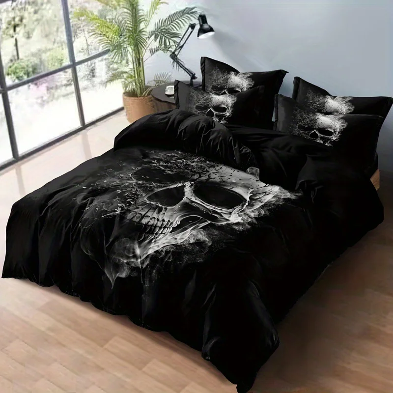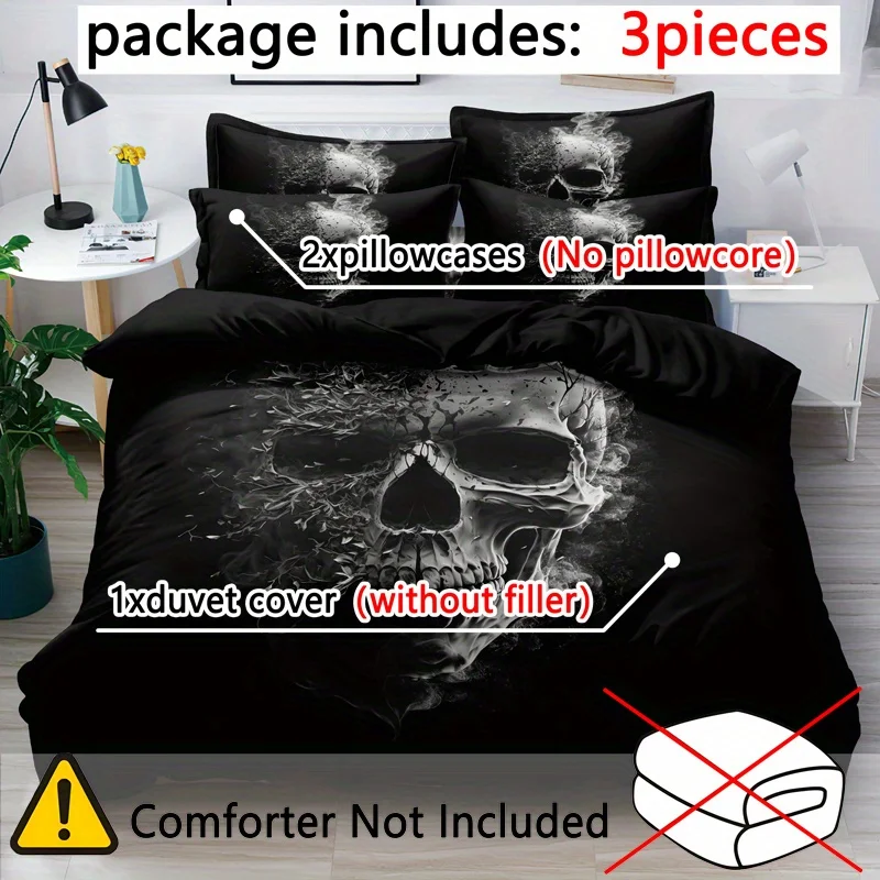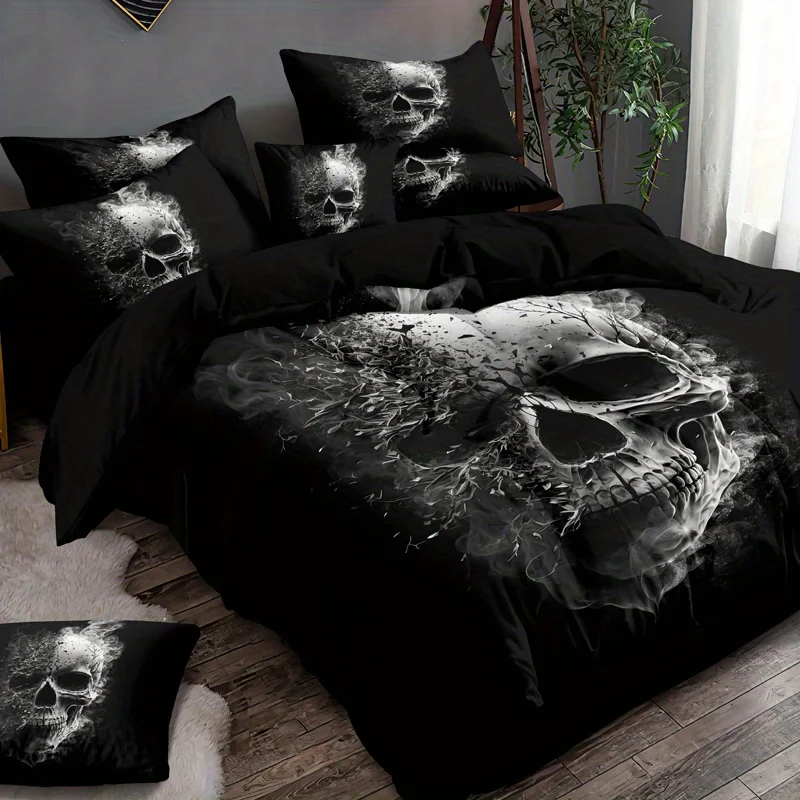 3pcss Dead Branches Skull Pattern Duvet Cover Set – Soft And Comfortable Bedroom, Guest Room And Dorm Decorative Bedding 3pcss