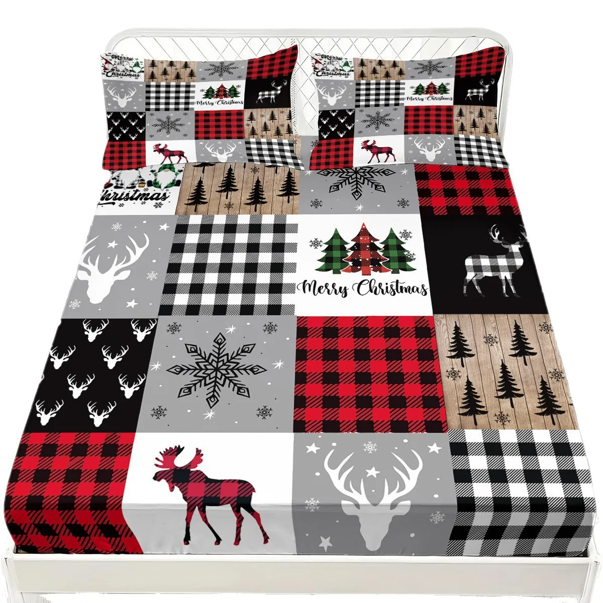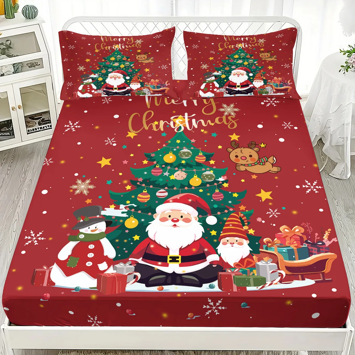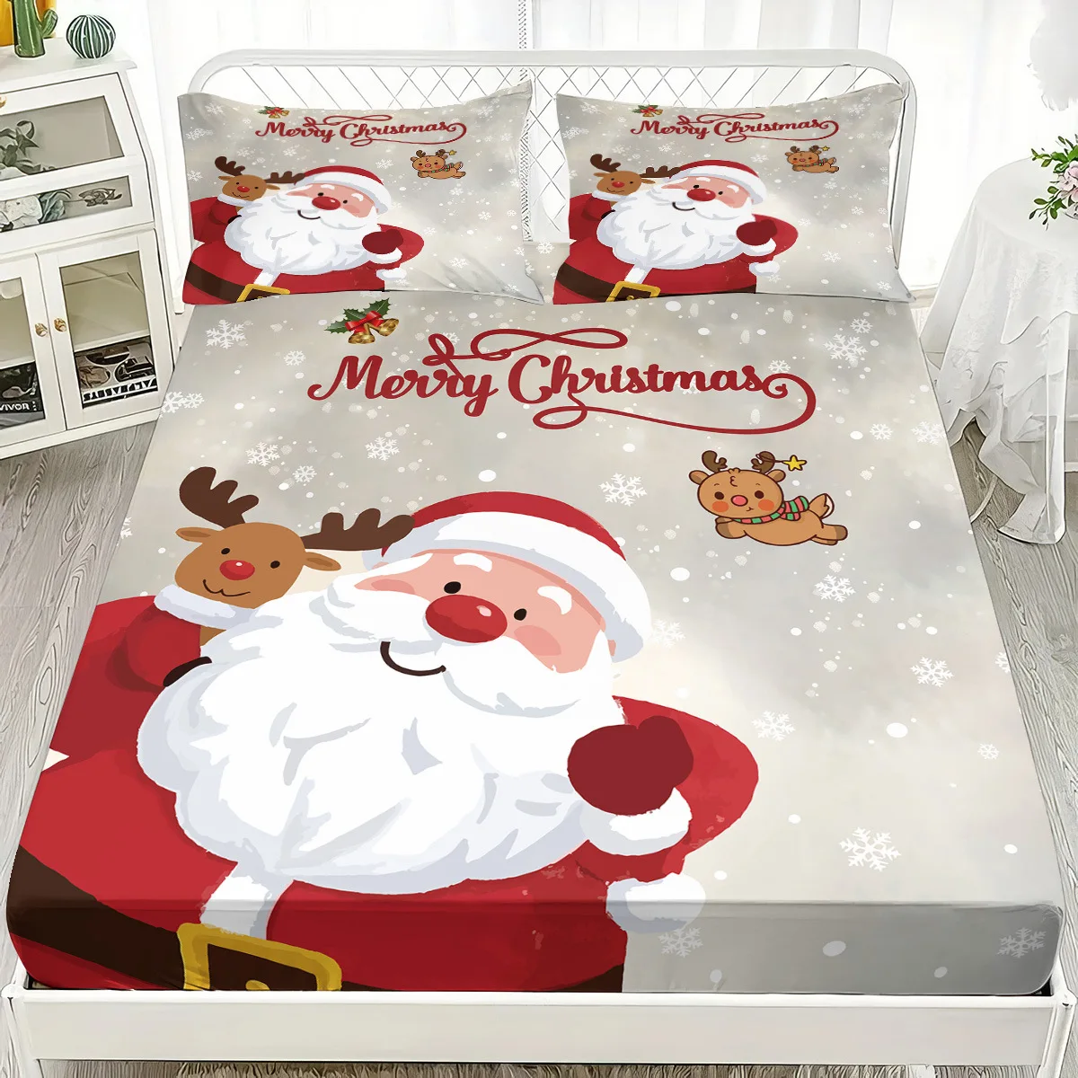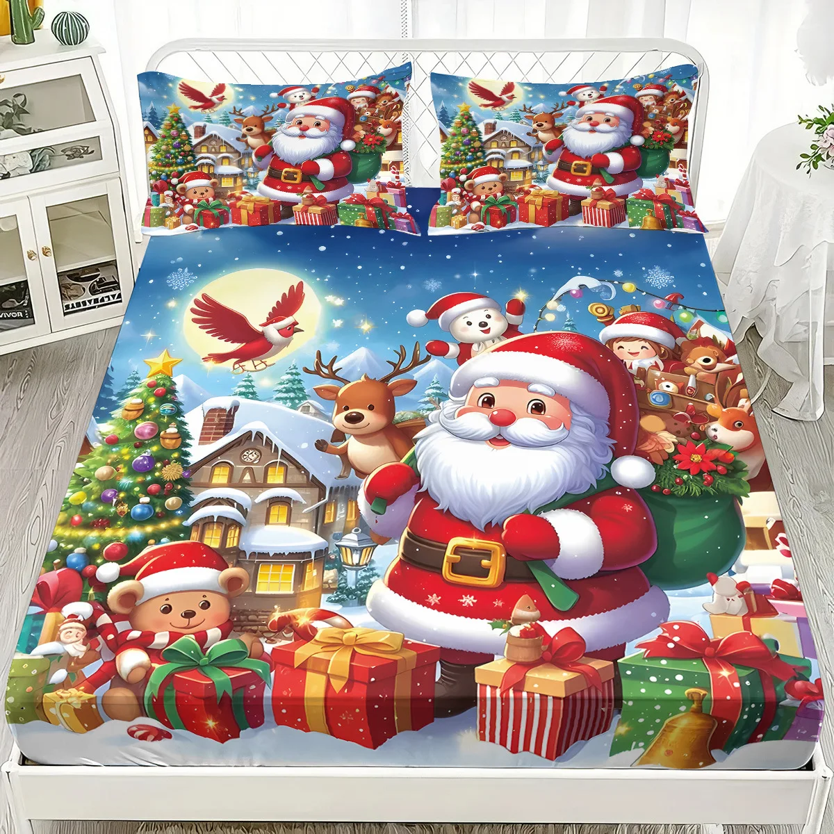 Christmas theme Fitted Sheet Santa Claus elk Christmas tree Print coreless Fitted Sheet Set Soft Bedspread Bedroom Bedding Decor