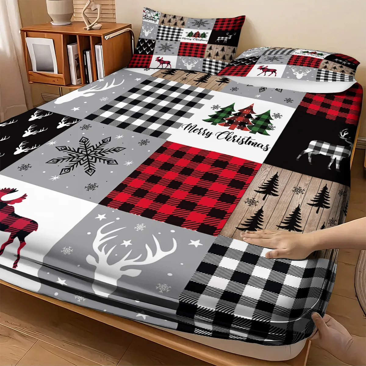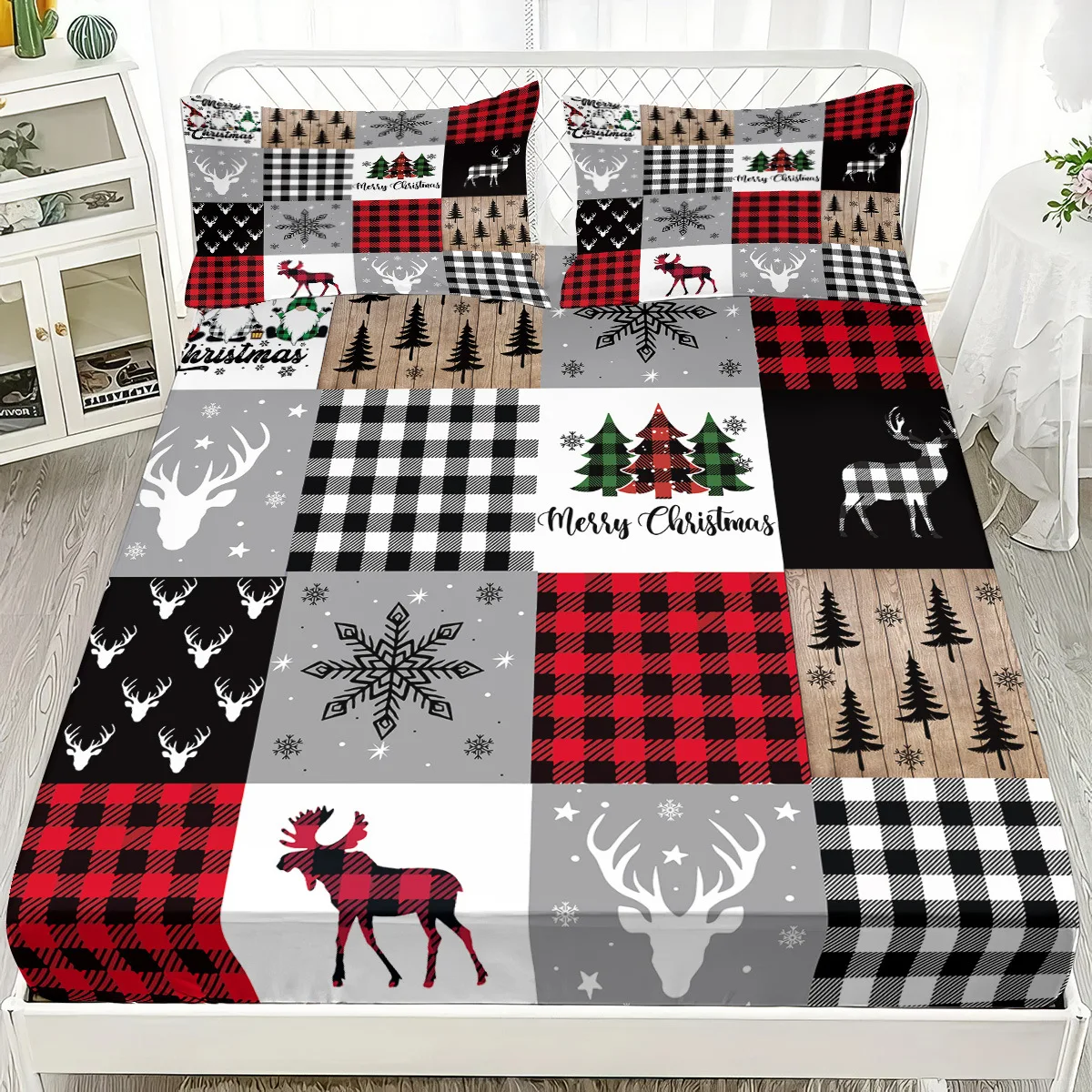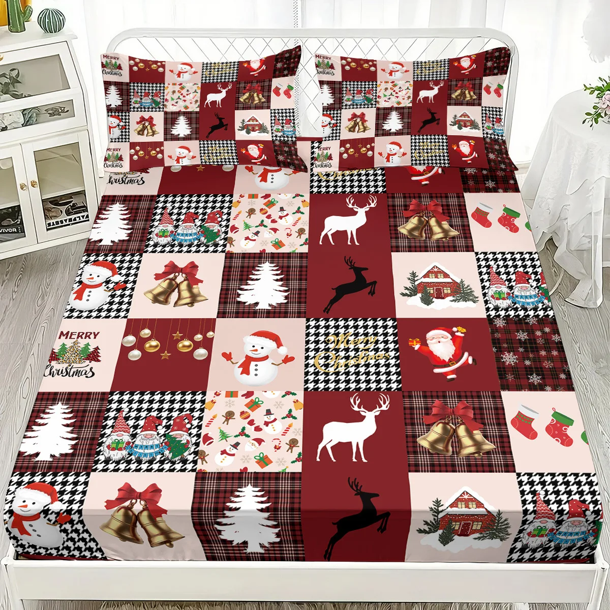Christmas theme Fitted Sheet Santa Claus elk Christmas tree Print coreless Fitted Sheet Set Soft Bedspread Bedroom Bedding Decor