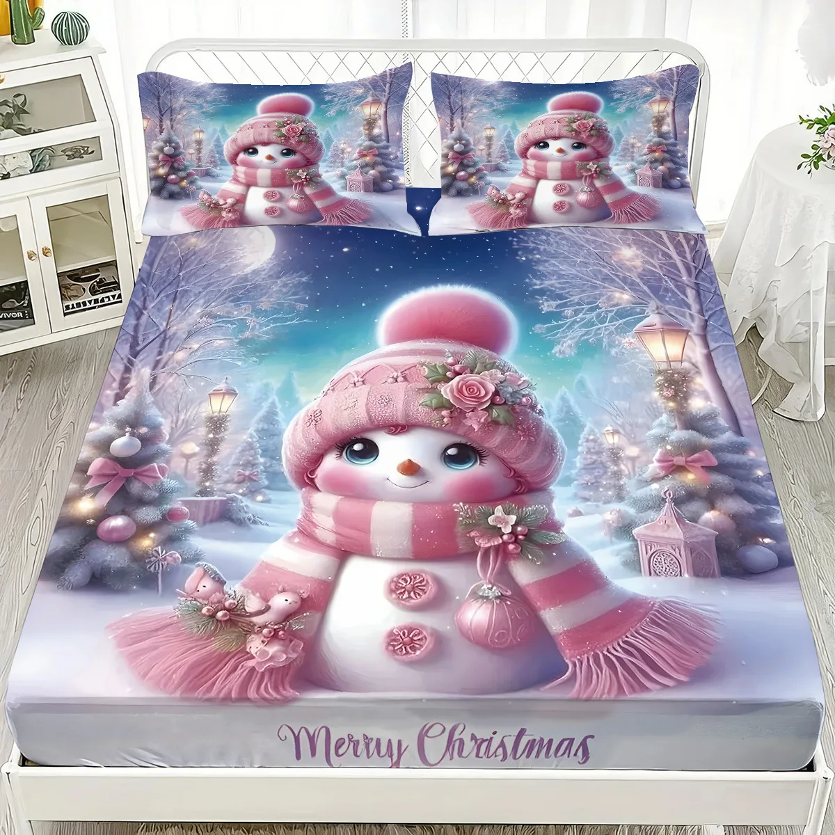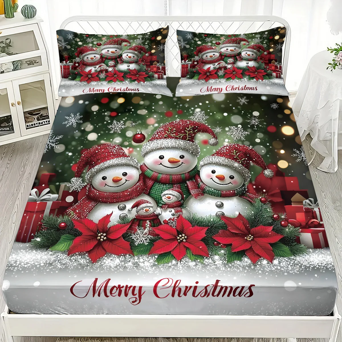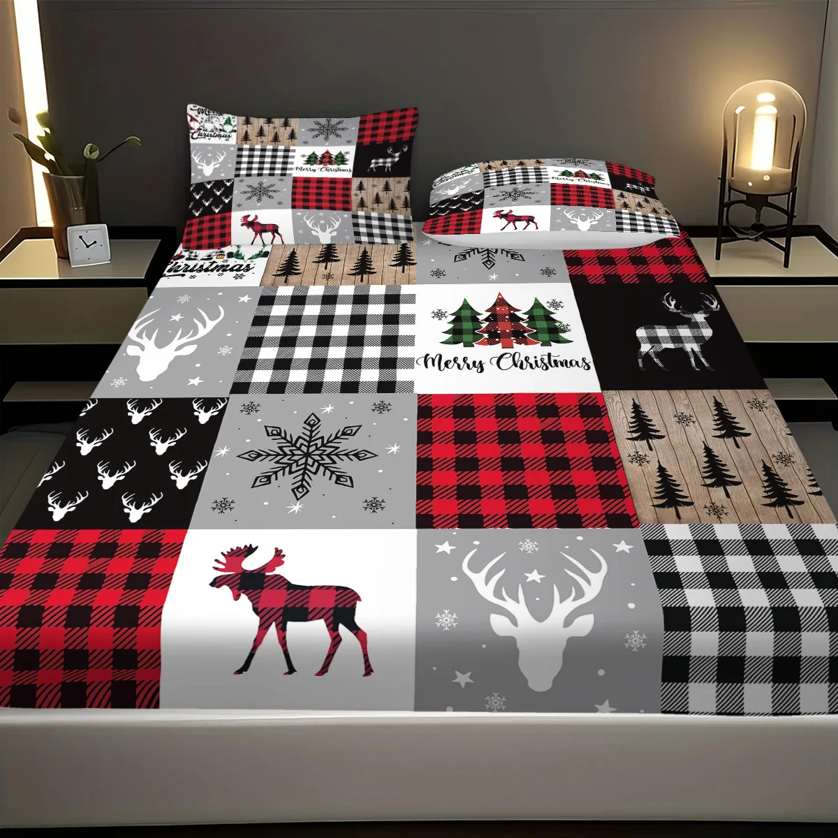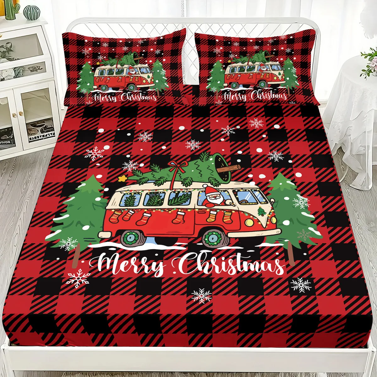 Christmas theme Fitted Sheet Santa Claus elk Christmas tree Print coreless Fitted Sheet Set Soft Bedspread Bedroom Bedding Decor