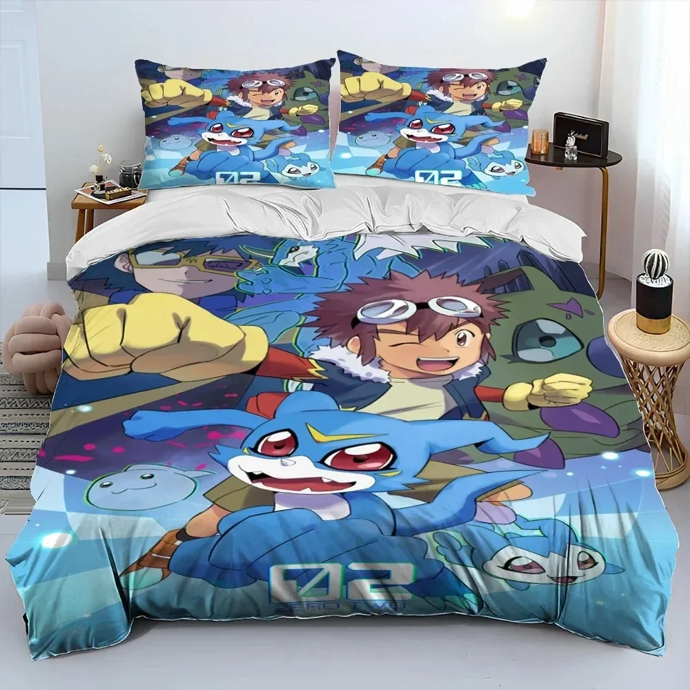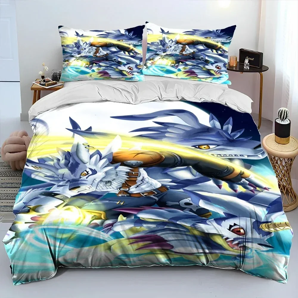Digimon Adventure Monster Cartoon Comforter Bedding Set,Duvet Cover Bed Set Quilt Cover Pillowcase,king Queen Size Bedding Set