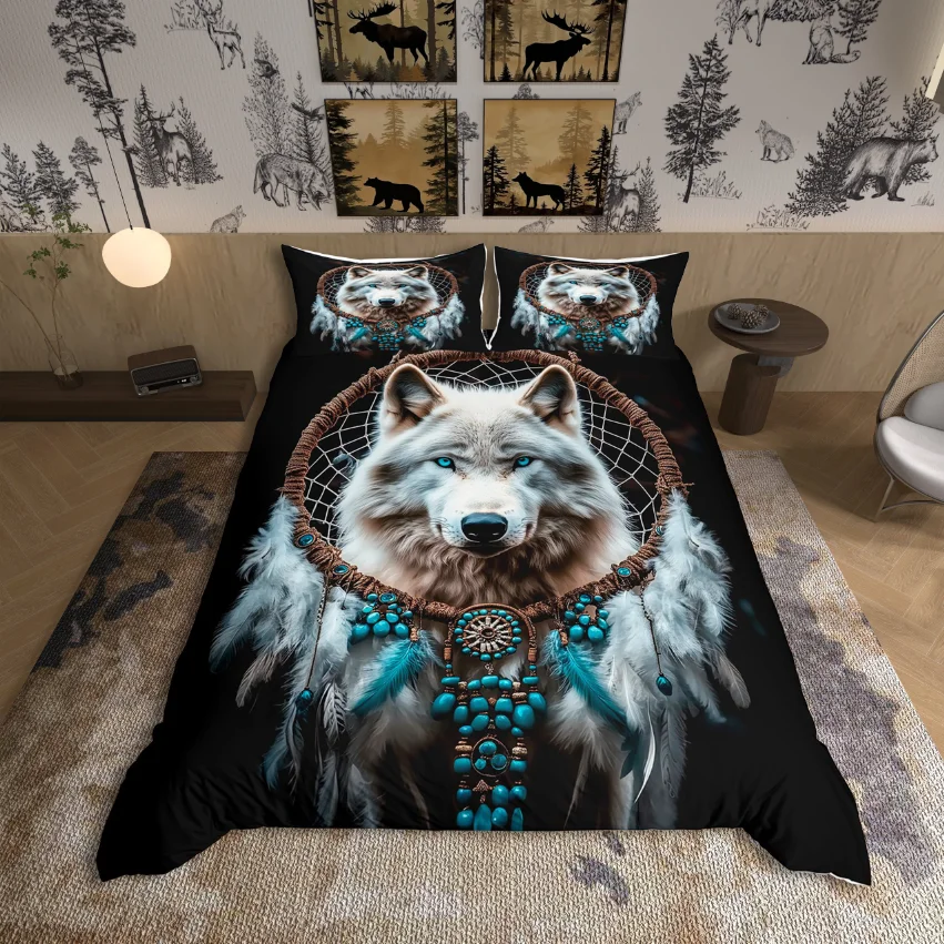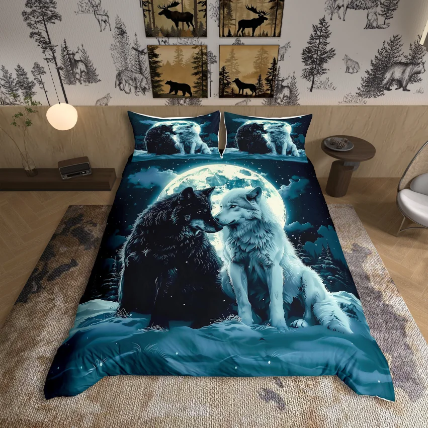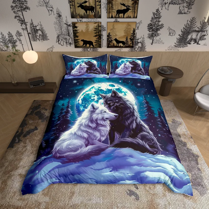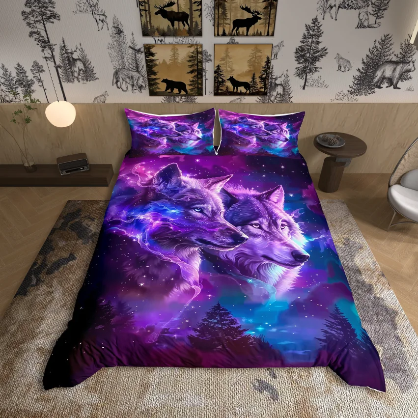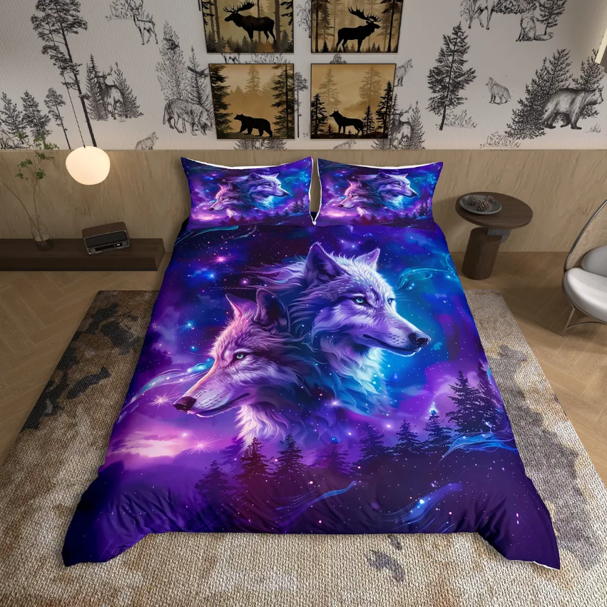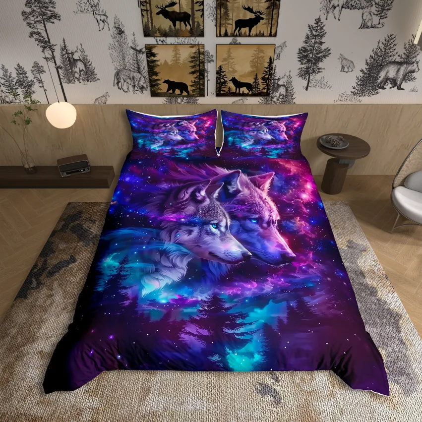 Homewish Wild Wolf Duvet Cover Set,Jungle Animal Comforter Cover Set,Galaxy Starry Night For Boys Kids,Ultra Soft Home Decor