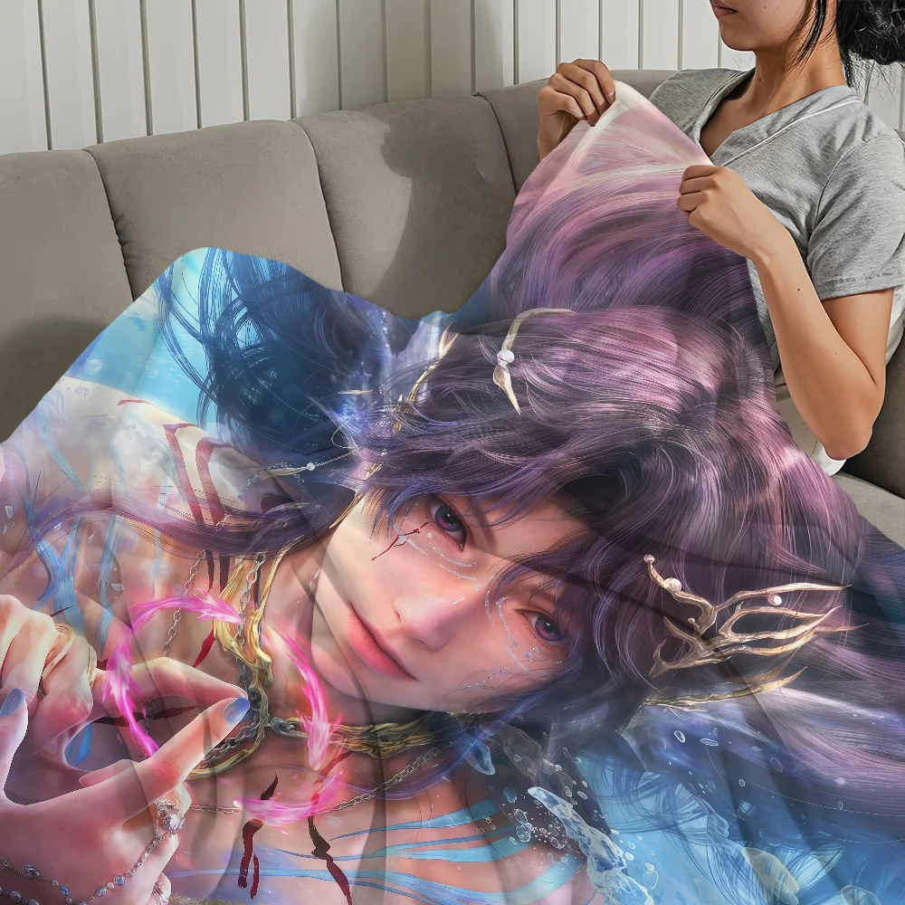 Love and Deepspace Rafayel Submerged Eclipse Merling Oath warm soft plush blanket for sofa living room bedroom travel Flannel