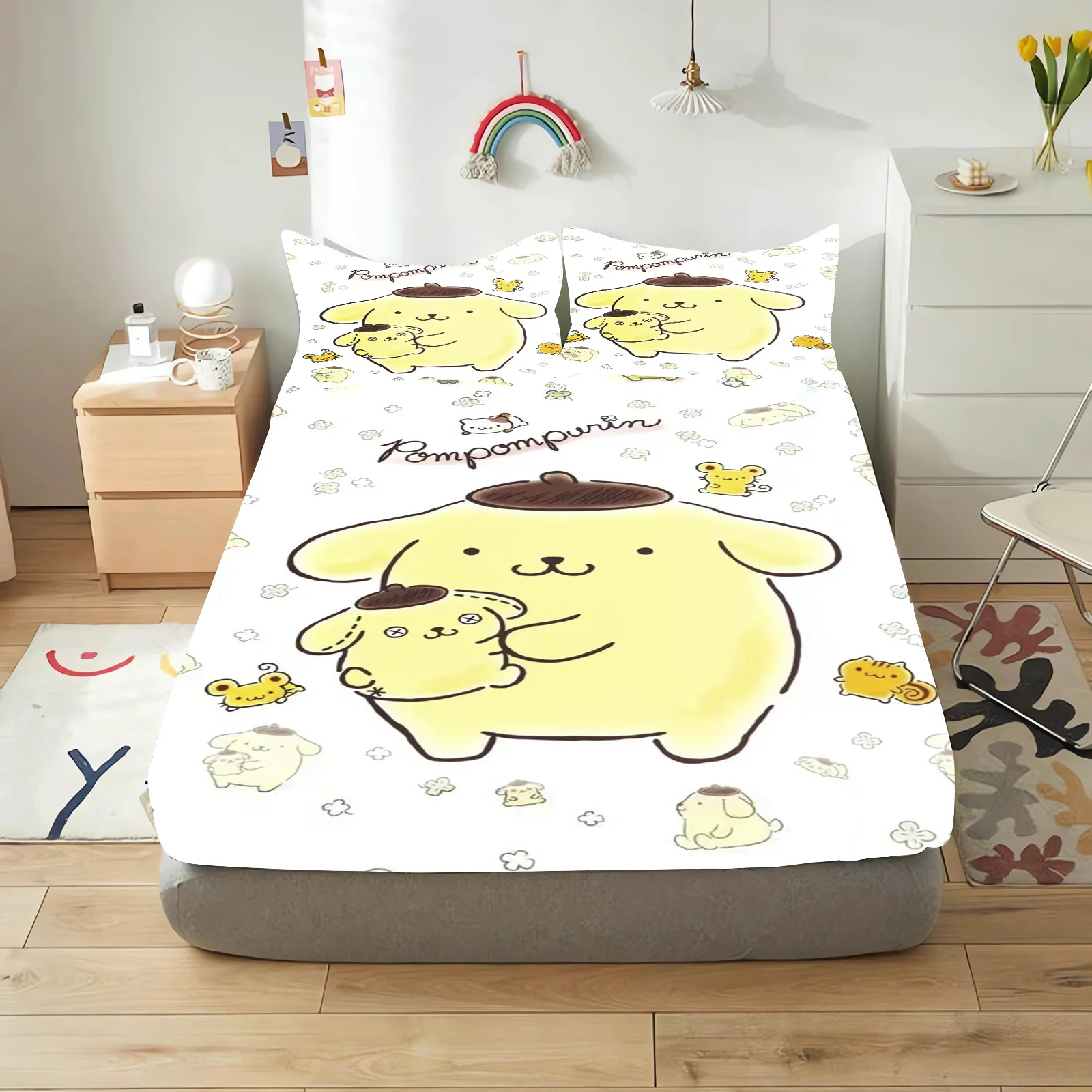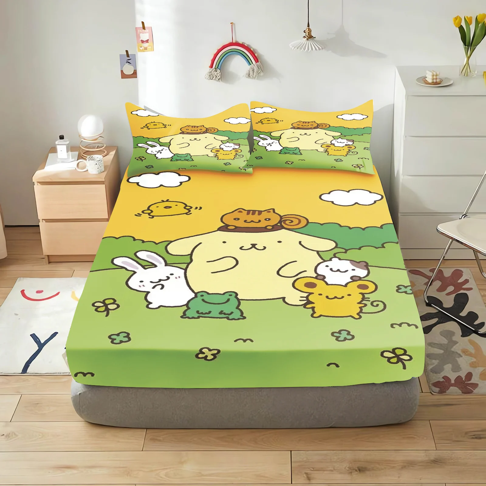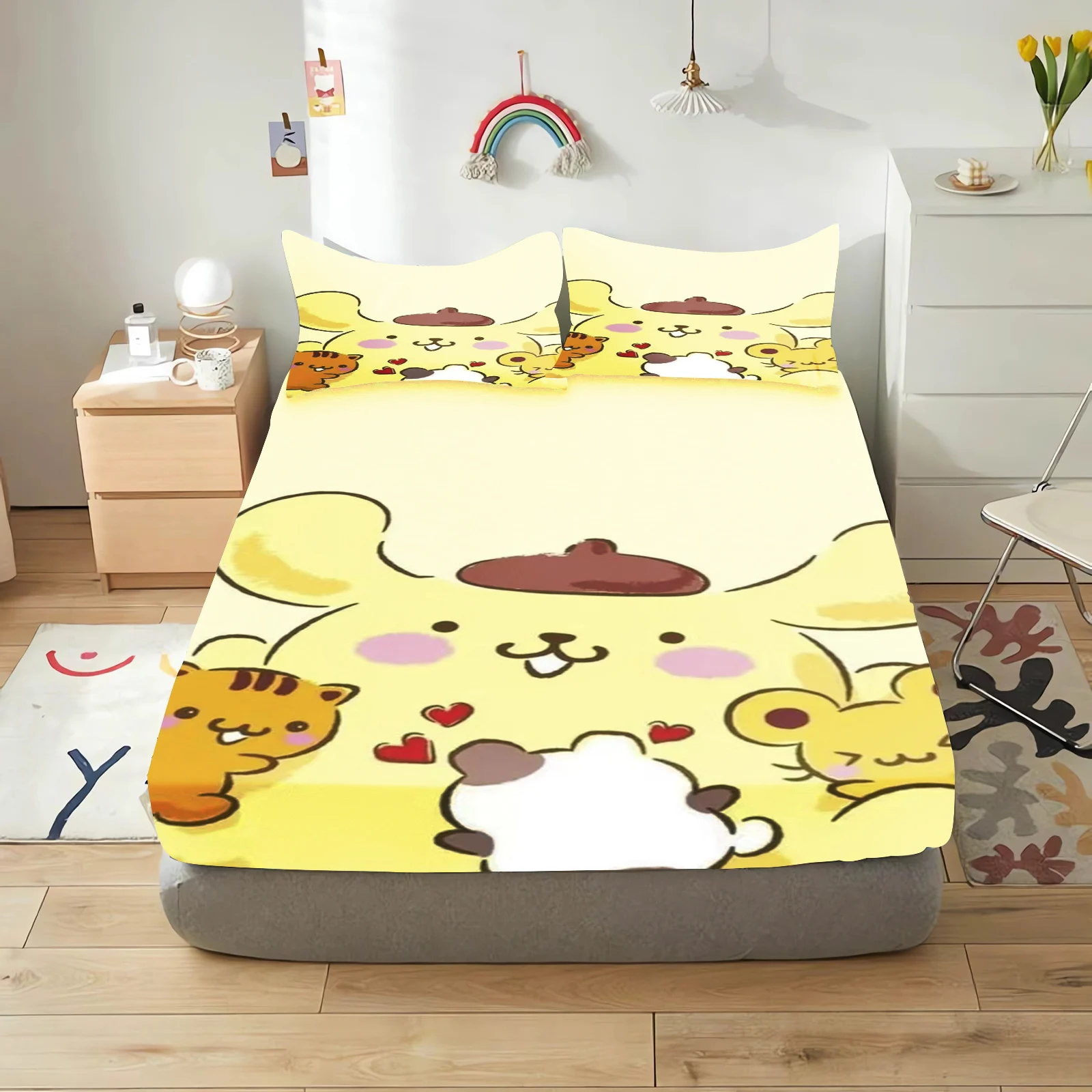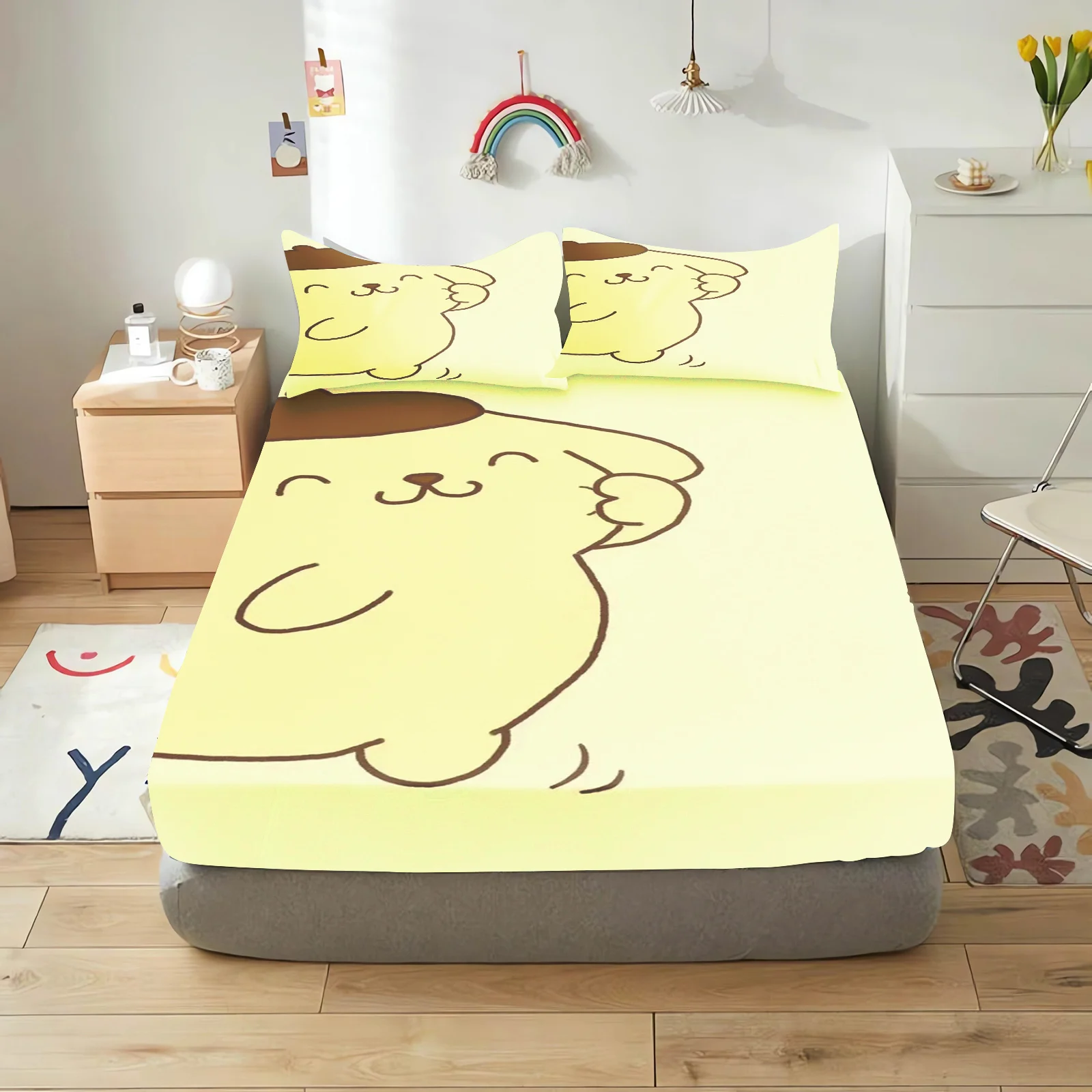 Pudding Dog Fitted Sheet Children, Sanrio Cartoon Coverage, Baby Teenager Sheets Cover, Elastic Bedding, Cute Digital Printing