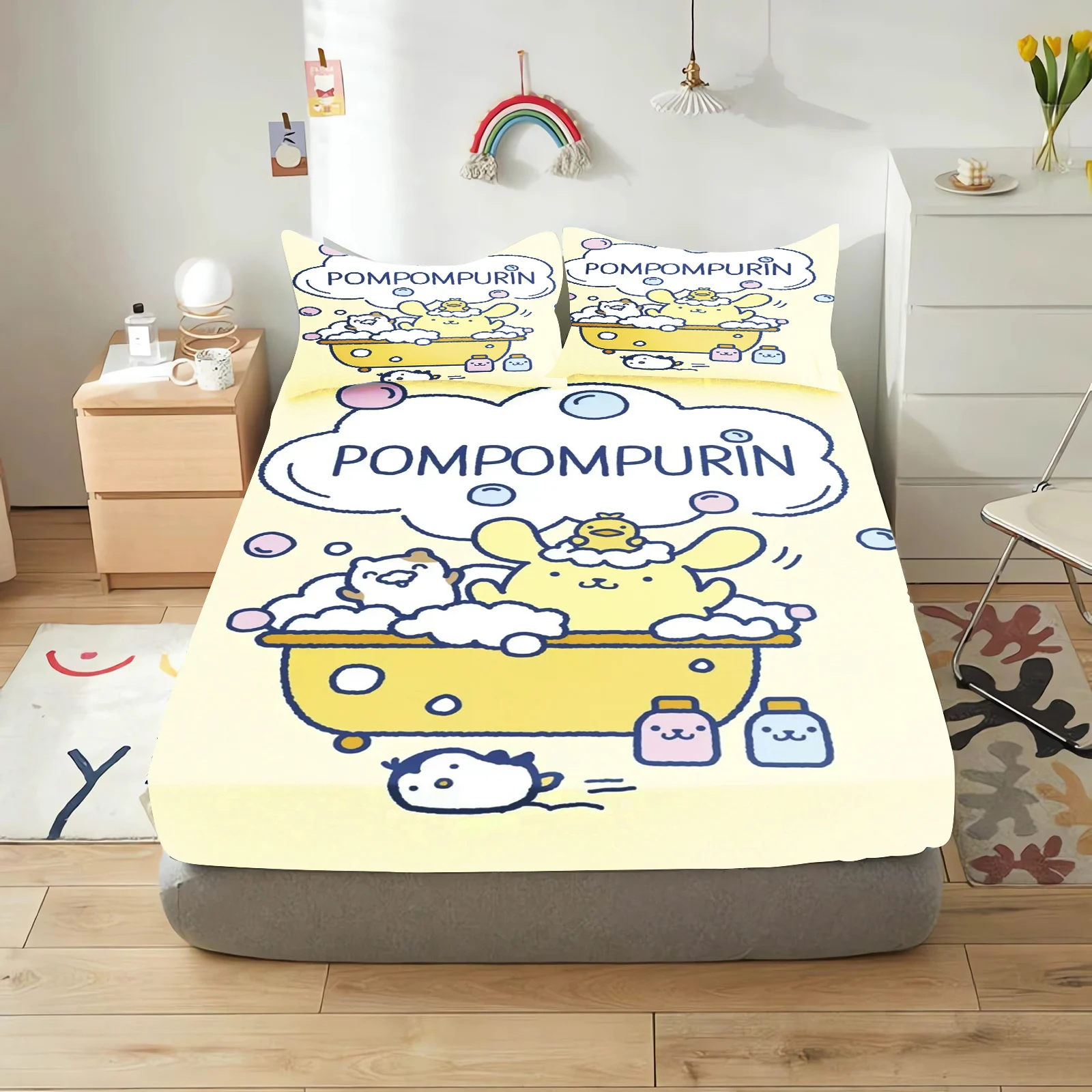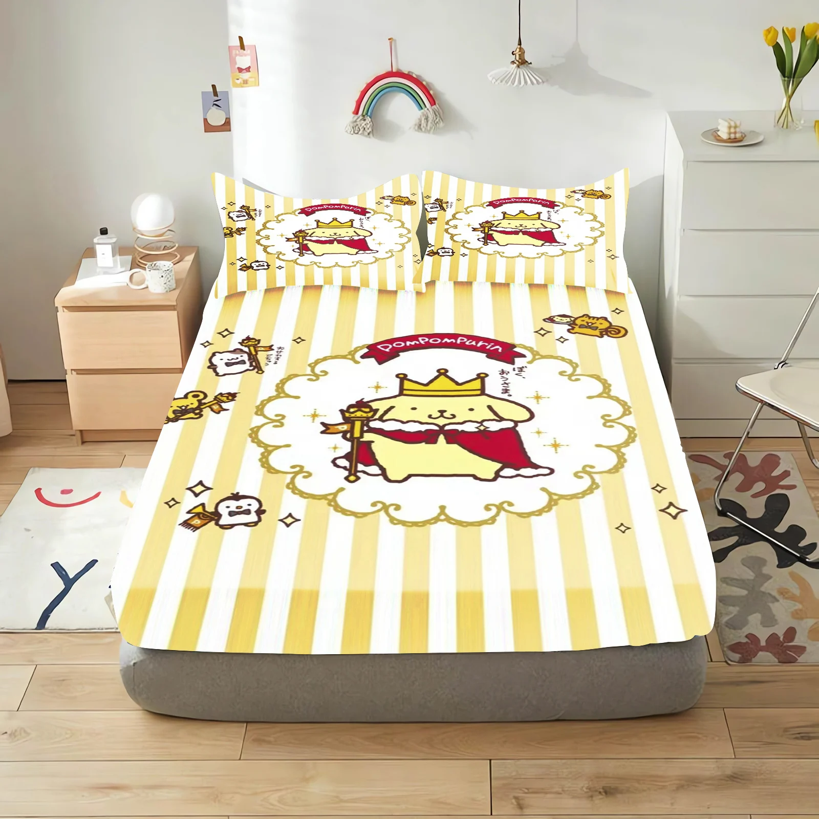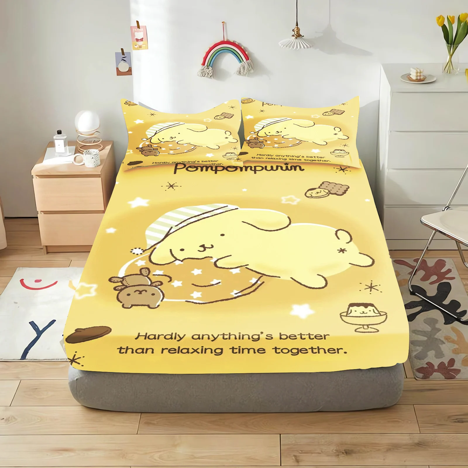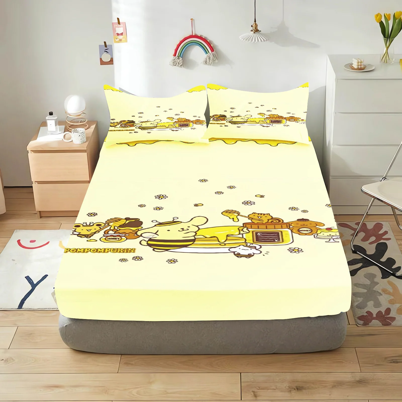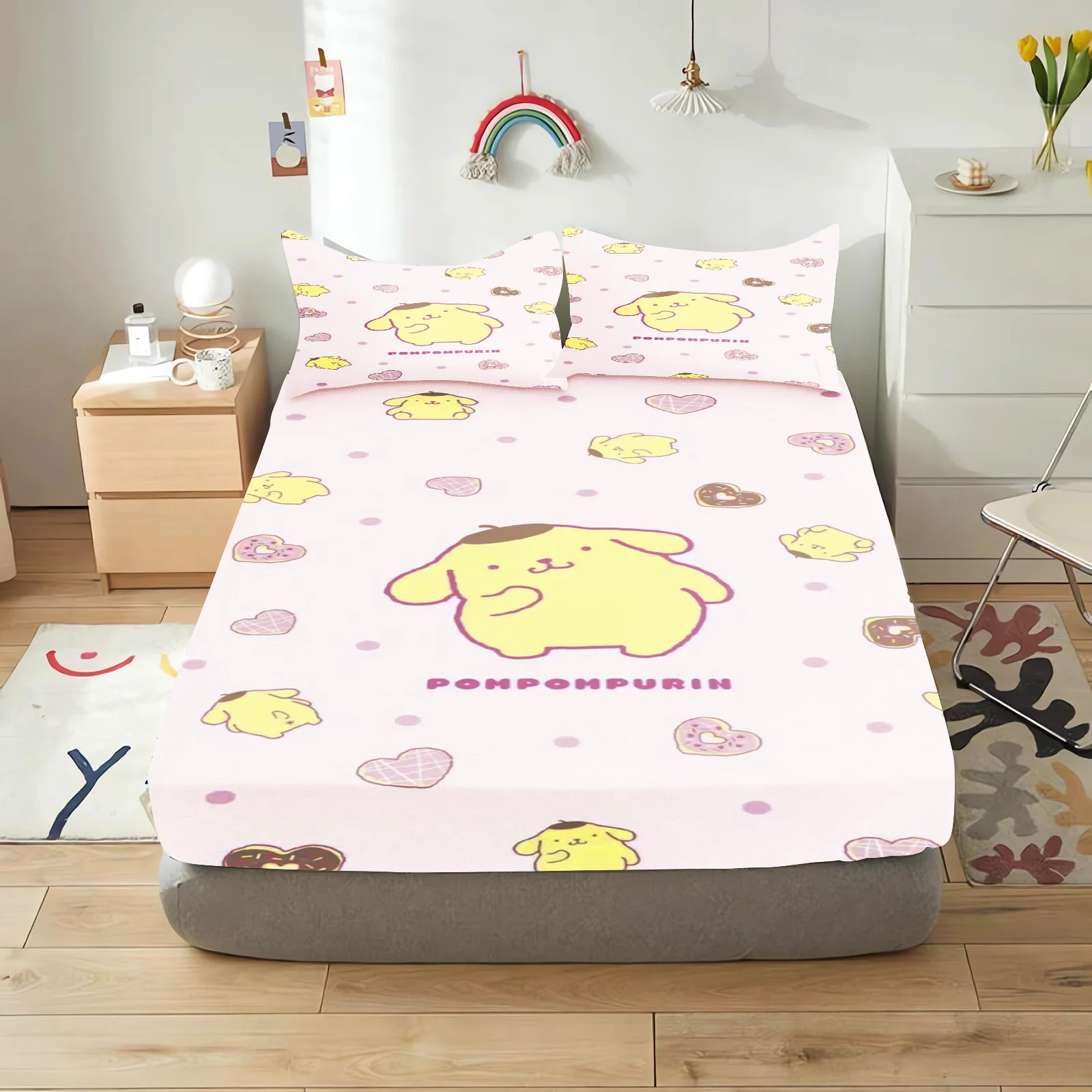 Pudding Dog Fitted Sheet Children, Sanrio Cartoon Coverage, Baby Teenager Sheets Cover, Elastic Bedding, Cute Digital Printing