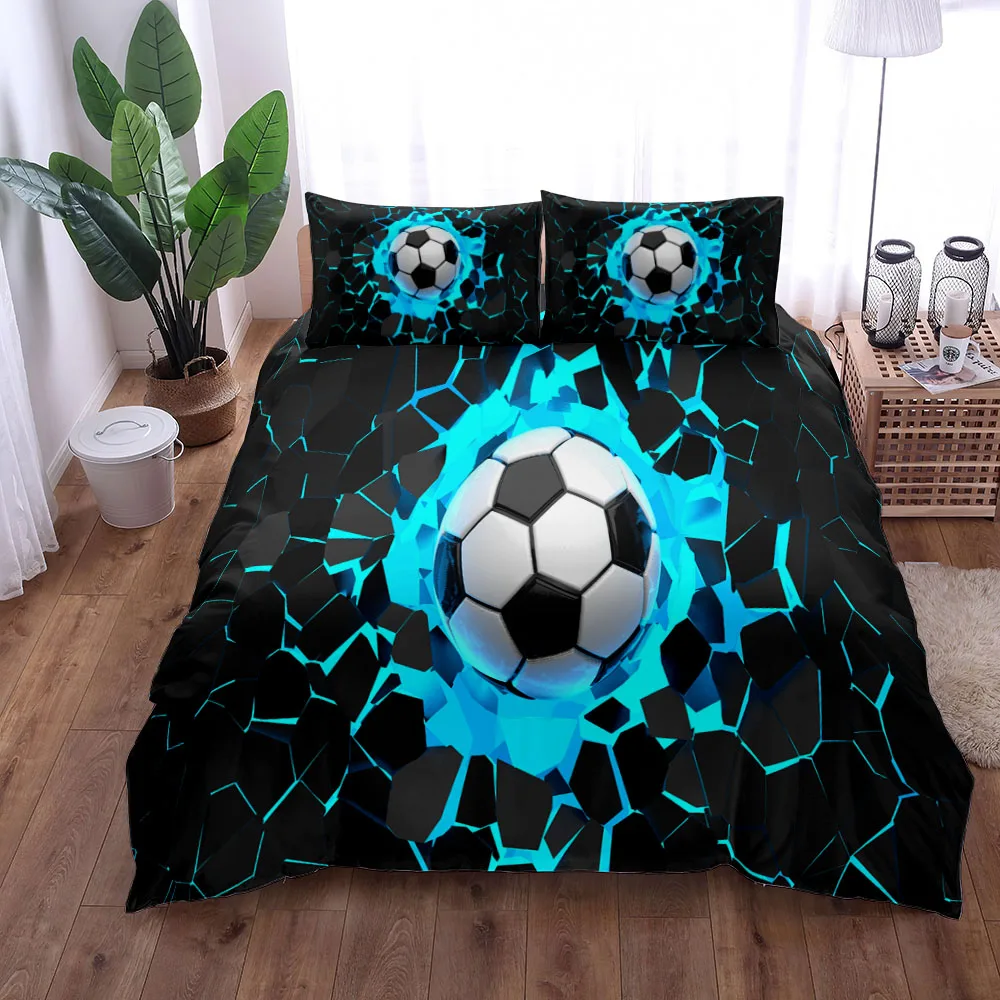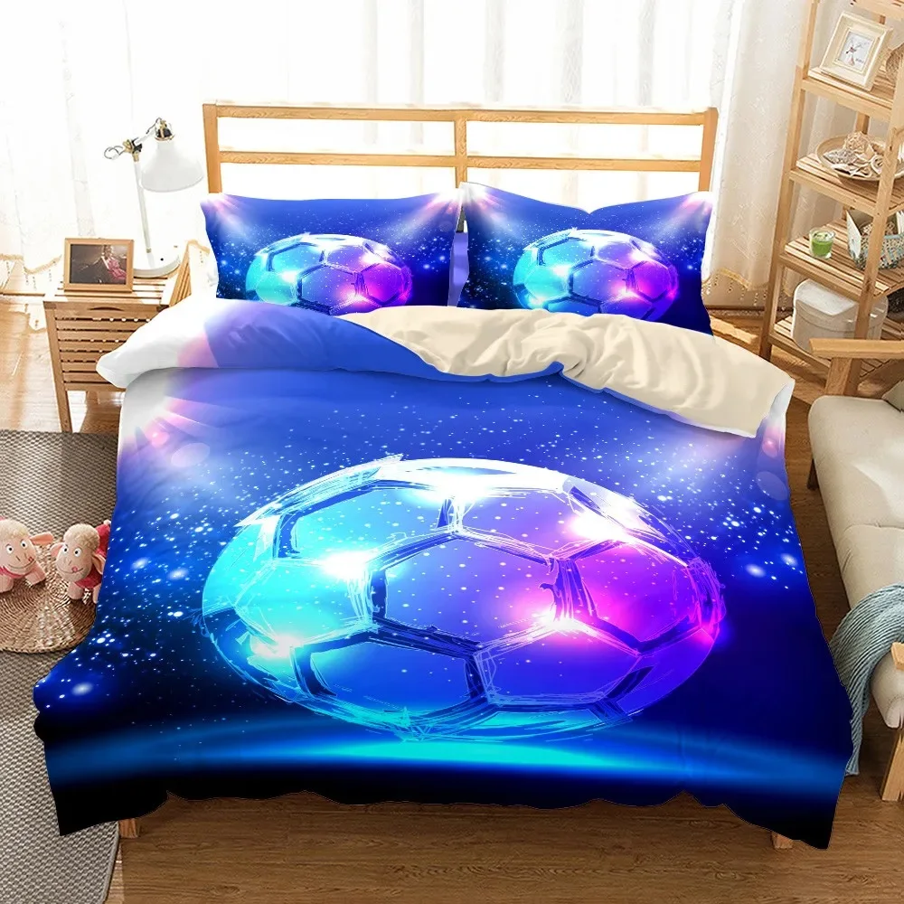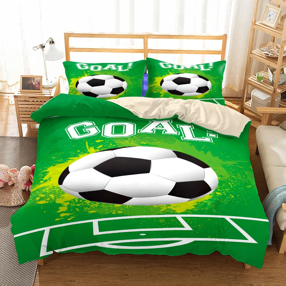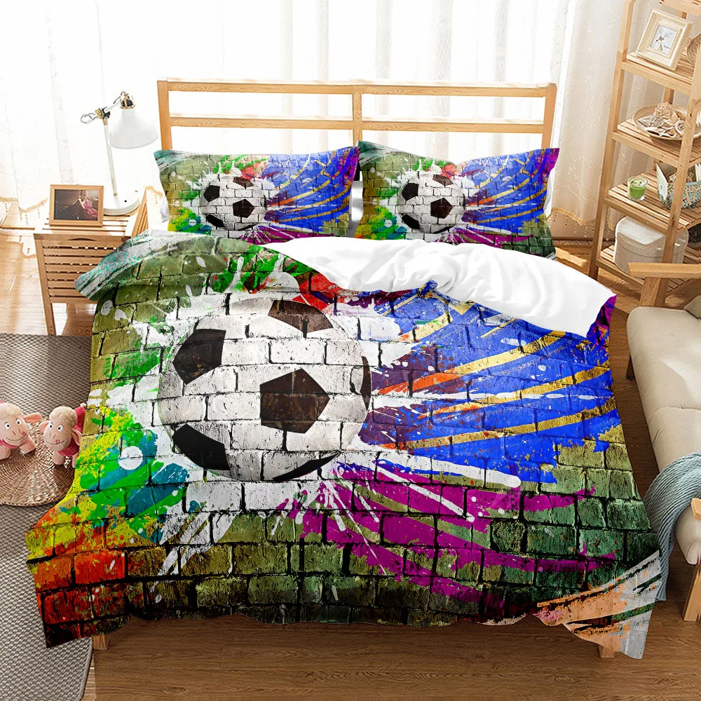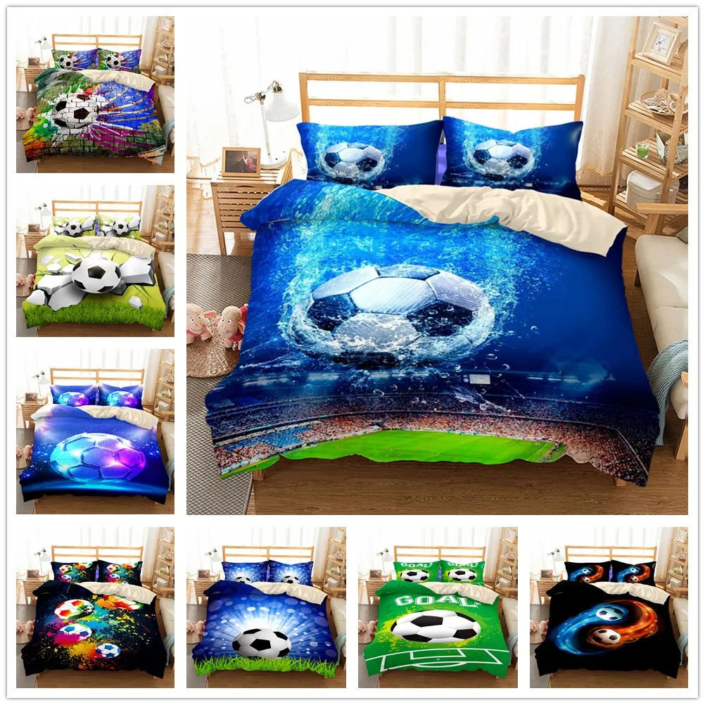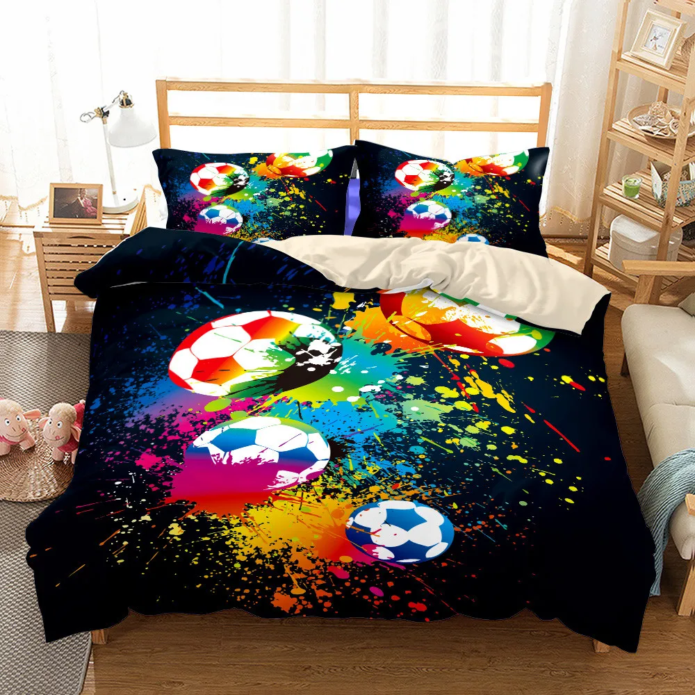 Watercolor Soccer Children Duvet Cover Set King Queen Double Full Twin Single Size Bed Linen Set